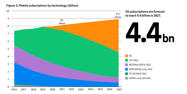 在愛立信移動(dòng)報(bào)告十周年紀(jì)念版中,這家瑞典設(shè)備商現(xiàn)在預(yù)測(cè)到2021年底,全球5G用戶將超過(guò)6.6億,到2027年底,全球5G用戶預(yù)計(jì)將達(dá)到44億。