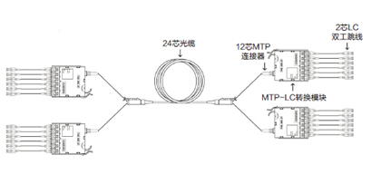 展示 12 芯主干光纜接入模塊,轉(zhuǎn)換為 2 芯跳線的簡圖