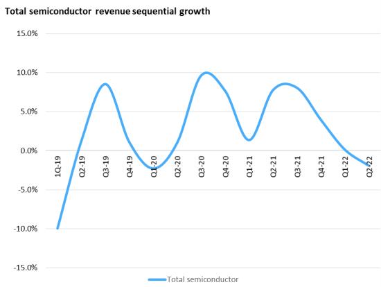 導(dǎo)致目前半導(dǎo)體市場(chǎng)下滑的一個(gè)因素是英特爾2Q22的業(yè)績(jī)表現(xiàn),以及該公司1Q22微處理器(MPU)業(yè)務(wù)下滑13%。這個(gè)占整個(gè)半導(dǎo)體市場(chǎng)超過10%的細(xì)分市場(chǎng)的下跌已經(jīng)拉低了整個(gè)市場(chǎng)。