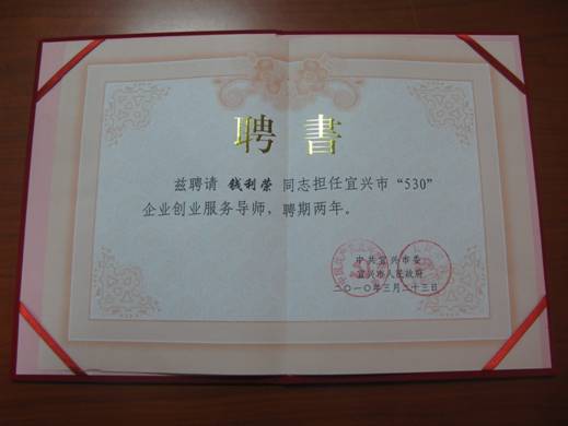 近年中,宜興市把實(shí)施“530”計(jì)劃,作為帶動(dòng)產(chǎn)業(yè)轉(zhuǎn)型升級(jí)、提升經(jīng)濟(jì)核心競爭力的戰(zhàn)略舉措全力推進(jìn)。為解決引進(jìn)的高層次創(chuàng)新創(chuàng)業(yè)人才遇到的資金、人才引進(jìn)、市場開拓等方面的創(chuàng)業(yè)難題,宜興市委、市政府決定聘請(qǐng)包括公司董事長