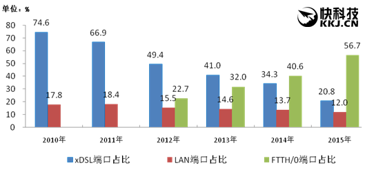 上周,工信部運(yùn)行監(jiān)測協(xié)調(diào)局發(fā)布了《2015年通信運(yùn)營業(yè)統(tǒng)計(jì)公報(bào)》,公報(bào)顯示,在互聯(lián)網(wǎng)寬帶接入方面,2015年底達(dá)到2.134億戶,同比增長1288.8萬戶;其中xDSL用戶為5021萬,下降3917.7萬;FTTx用戶達(dá)1.2億戶,增加5140.8萬戶,超過xDSL成主流。