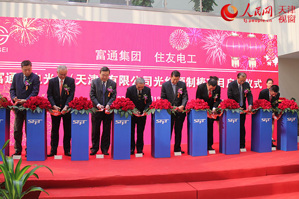 啟動儀式上,參加活動的嘉賓領(lǐng)導(dǎo)共同為項目剪彩。富通集團和住友電工天津光纖預(yù)制棒項目于今年8月竣工并正式點火試生產(chǎn)。該項目主要致力于大尺寸光纖預(yù)制棒產(chǎn)品和技術(shù)的研發(fā)、制造,其光纖預(yù)制棒制造系統(tǒng)采用全球最先進的超高速合成技術(shù),沉積速度快、生產(chǎn)效率高。項目填補了中國華北地區(qū)光纖預(yù)制棒技術(shù)的空白,天津高新區(qū)也將成為中國最先進的光纖預(yù)制棒研發(fā)、制造基地之一。