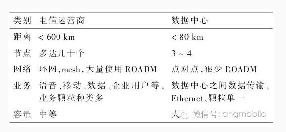 幾年前貝爾實(shí)驗(yàn)室城域網(wǎng)流量增長白皮書指出,城域網(wǎng)流量的增長速度將大大高于干線網(wǎng)絡(luò),城域網(wǎng)將成為光通信的最大市場,其中數(shù)據(jù)中心的城域網(wǎng)占很大一部分。數(shù)據(jù)中心的城域網(wǎng)和電信運(yùn)營商的城域網(wǎng)有很大的不同,主要的不同點(diǎn)列在表1中。