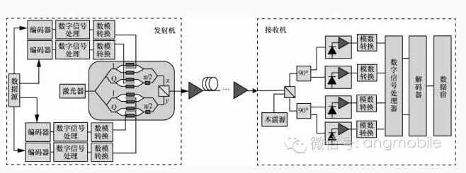 今天數(shù)字相干光通信技術(shù)已經(jīng)成為干線傳輸網(wǎng)的主要技術(shù)。圖4給出了數(shù)字相干光通信系統(tǒng)框架。