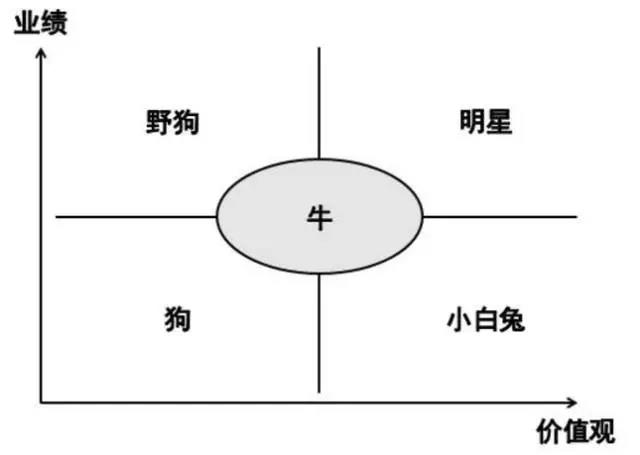 無獨有偶,在阿里巴巴的用人體系中,也是績效和價值觀各占50%,那些績效很好但是價值觀與公司不匹配的員工,被歸為“野狗”,也是需要首先被淘汰的。