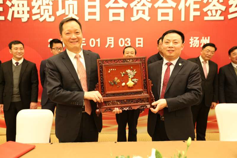 ICCSZ訊 2018年1月3日,長(zhǎng)飛光纖光纜股份有限公司(以下簡(jiǎn)稱(chēng)“長(zhǎng)飛公司”,股票代碼:6869.HK)與寶勝科技創(chuàng)新股份有限公司(以下簡(jiǎn)稱(chēng)“寶勝股份”,股票代碼:600973.SH)在美麗的瘦西湖畔揚(yáng)州迎賓館簽署了海纜項(xiàng)目合資協(xié)議。揚(yáng)州市市委書(shū)記謝正義,市委常委、常務(wù)副市長(zhǎng)陳楊,市經(jīng)濟(jì)技術(shù)開(kāi)發(fā)區(qū)黨工委書(shū)記蔣愛(ài)祥, 市經(jīng)濟(jì)技術(shù)開(kāi)發(fā)區(qū)管委會(huì)主任陳曦等領(lǐng)導(dǎo)親臨會(huì)場(chǎng)祝賀,寶勝集團(tuán)董事長(zhǎng)楊澤元,副總裁梁文旭,寶勝股份副總裁夏成軍、陳大勇,長(zhǎng)飛公司董事長(zhǎng)馬杰,副總裁兼董事會(huì)秘書(shū)周理晶,財(cái)務(wù)總監(jiān)梁冠寧,戰(zhàn)略與市場(chǎng)部經(jīng)理周欽敏等出席了簽約儀式。
