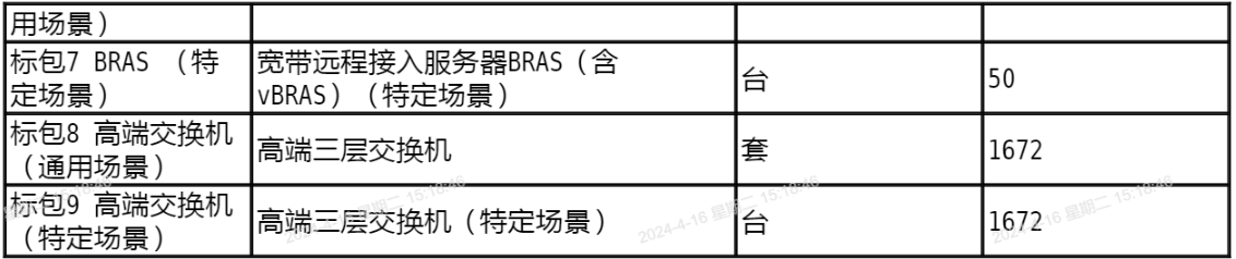 標(biāo)包9:高端交換機(jī)(特定場景),數(shù)量1672臺。