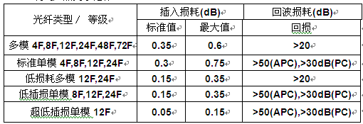 MTP 跳線產(chǎn)品光學(xué)指標(biāo):