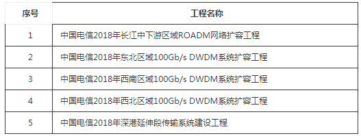 ICCSZ訊(編輯:Aiur) 4月23日消息,中國電信公布2018年長江中下游區(qū)域ROADM網(wǎng)絡(luò)及西北、西南、東北區(qū)域和深港延伸段4個100G DWDM系統(tǒng)擴容工程單一來源采購結(jié)果,華為、中興通訊和烽火通信入選。