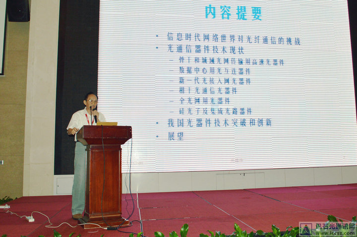 早上九點,會議正式開始。首先為大家?guī)硌葜v的是訊石老朋友,來自上海交通大學(xué),也是IEEE終身高級會員的陳益新教授,陳教授此次演講主題為<<光通信器件的機(jī)遇和創(chuàng)新>>,陳老師談到信息時代網(wǎng)絡(luò)世界對光纖通信的挑戰(zhàn),人與物都處于數(shù)字化連接,全球經(jīng)濟(jì)結(jié)構(gòu)發(fā)生變化。我國光通信產(chǎn)業(yè)鏈的薄弱環(huán)節(jié)是光器件,光器件是新一代光網(wǎng)絡(luò)的關(guān)鍵,未來需要重點突破的是高端光器件。光器件的新挑戰(zhàn)將往更高速率、頻譜更寬、損耗更小、功耗更低、靈敏度更高、時延更短等方向發(fā)展。