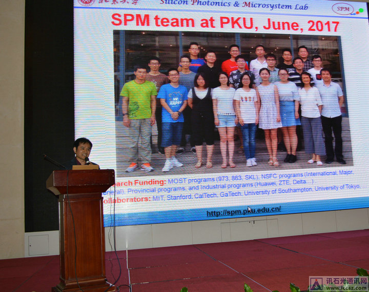 隨后為我們帶來精彩演講的是北京大學(xué)周治平教授,其演講主題為<<硅基光電子發(fā)展新進(jìn)程>>,硅基光電子繼承于微電子,來源于光電子,具有尺寸小、成本低、集成度高、多通道、大寬帶、高速率等特點。周教授為大家介紹硅基光電子國內(nèi)外建設(shè)平臺,如國外喬治亞理工學(xué)院微電子研究中心CMOS研發(fā)平臺,國內(nèi)IMECAS、SIMTAC平臺等。硅基光電子技術(shù)將往更高傳輸速率、更大規(guī)模片上集成、更多科研平臺建成上發(fā)展,而隨著越來越多廠商的加入,產(chǎn)業(yè)鏈更完善,覆蓋短途和長距。