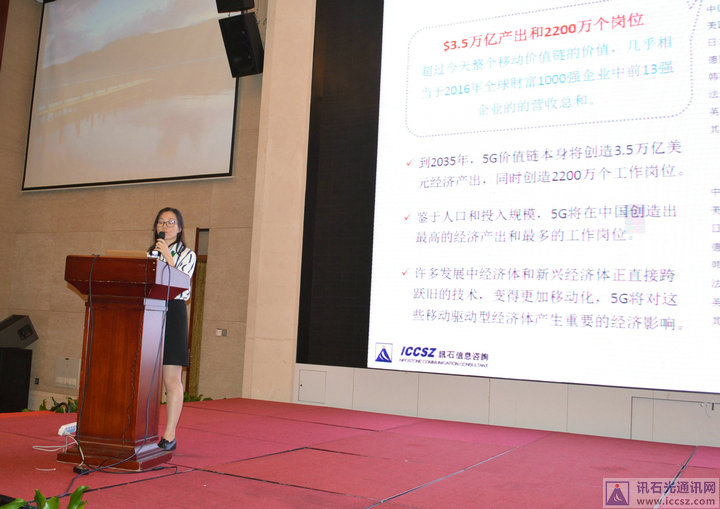 5G已是行業(yè)熱點,國家大力推進(jìn)5G建設(shè),運營商正與政府和企業(yè)進(jìn)行密切合作,不斷加大5G技術(shù)部署行程,據(jù)悉,中國有望在2025年前發(fā)展成為全球最大5G市場。訊石作為光通訊行業(yè)專業(yè)信息咨詢平臺,致力提供準(zhǔn)確市場信息。訊石高級分析師吳娜在4號會議后階段,帶來了《全球及中國5G市場發(fā)展現(xiàn)狀及其給光通信帶來的機(jī)遇》分析演講。其講到:5G在2035年將在全球驅(qū)動12萬億美元經(jīng)濟(jì)活動,其中信息通信行業(yè)占第二大份額11.5%,中國5G網(wǎng)絡(luò)投資到2023年達(dá)到投資頂峰,之后緩慢下滑。物聯(lián)網(wǎng)(IoT)被認(rèn)為是驅(qū)動5G發(fā)展的首要應(yīng)用驅(qū)動力,2020年5G預(yù)計正式商用,部分運營商計劃提前商用時間至2019年。同時光網(wǎng)絡(luò)行業(yè)將是5G回程建設(shè)的主要受益者,5G時代光模塊和光纖光纜等需求量將是4G時代數(shù)倍。