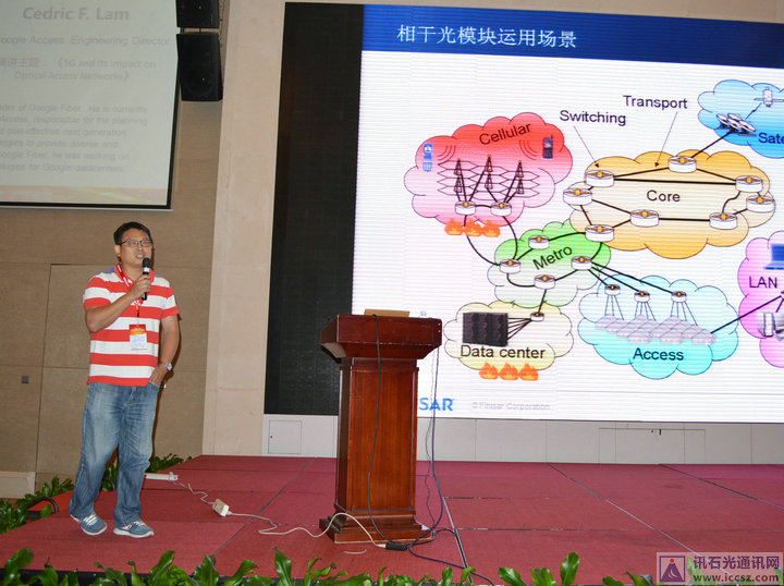 下午的第三位演講嘉賓,是來自Finisar的NPI Sr.manager 夏道劍先生,其在菲尼薩從事光模塊的設(shè)計研發(fā)和新產(chǎn)品導(dǎo)入工作,對于光模塊產(chǎn)業(yè)的歷史、現(xiàn)狀和發(fā)展有深刻的理解。在其演講<<相干光模塊發(fā)展情況>>中,夏劍道先生介紹到相干光模塊運用場景,相干光模塊調(diào)制復(fù)雜,測試時間長,OSA工藝流程復(fù)雜,制造周期長。提到Coherent的市場預(yù)期:相對于數(shù)通市場,100G+模塊爆發(fā)式增長,Coherent增速穩(wěn)定,其市場需求包含:CFP-DCO,CFP2-DCO,CFP2-ACO和設(shè)備廠商采購分列光組件(iTLA,ICR,IQM)自行構(gòu)建的光模塊。同時對100G/200G/400G光模塊作了比較,分享長距離Long-Haul 高速傳輸解決方案相關(guān)。
