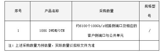 據(jù)此前報道,該采購項目于今年三月份獲得審批,采購數(shù)量約為6100個100Gb/s線路側(cè)端口及相應(yīng)的客戶側(cè)端口與公共單元,實際以招標量為準。