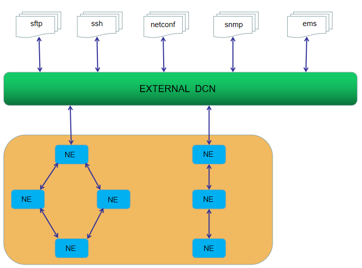 OTN產(chǎn)品在實際使用中以網(wǎng)元(Network Element,簡稱NE)的屬性存在,每個網(wǎng)元就是由一個獨立的設(shè)備或者多個設(shè)備按照主從子架進行級聯(lián)共同組成,業(yè)務(wù)就通過在不同網(wǎng)元之間進行傳遞。每個網(wǎng)元都存在北向接口,用戶可以通過設(shè)備的北向接口使用不同服務(wù)與設(shè)備進行通信與管理。OTN產(chǎn)品推出多種方式的北向管理方式,包含串口CLI、SSH、SFTP、NETCONF、網(wǎng)絡(luò)管理接口(EMS口)、SNMP等常用的接入模塊。