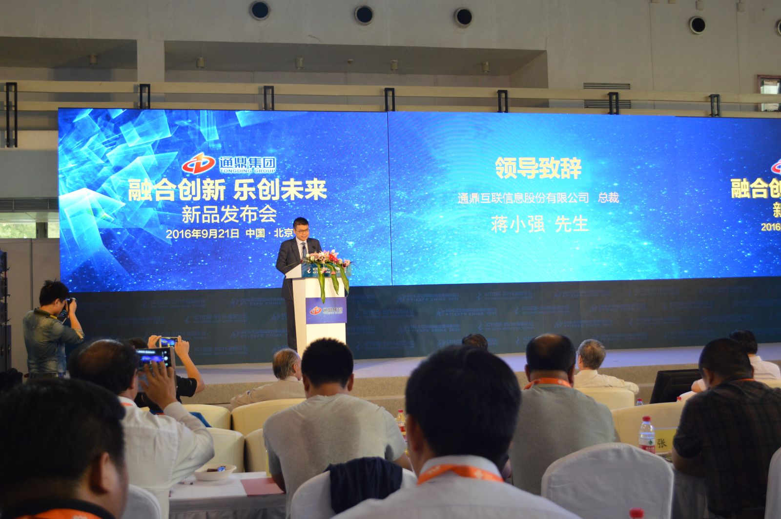 9月21日下午,通鼎集團攜新技術、新產品、新應用在展覽中心2號館召開新品發(fā)布會。通鼎互聯(lián)技術總監(jiān)李震宇主持會議。通鼎互聯(lián)總裁蔣小強、中國工程院院士鄔賀銓、中國通信企協(xié)光電線纜專委會秘書長段志剛分別發(fā)表致辭。通鼎互聯(lián)副總裁劉延輝、通鼎互聯(lián)技術總監(jiān)李震宇、北京百卓網(wǎng)絡技術有限公司總經理陳海濱,則從三個維度對通鼎的新品進行了詳細的介紹。最后,通鼎集團董事長沈小平對會議進行了總結,同時對通鼎集團的未來發(fā)展進行相關闡述和展望!
