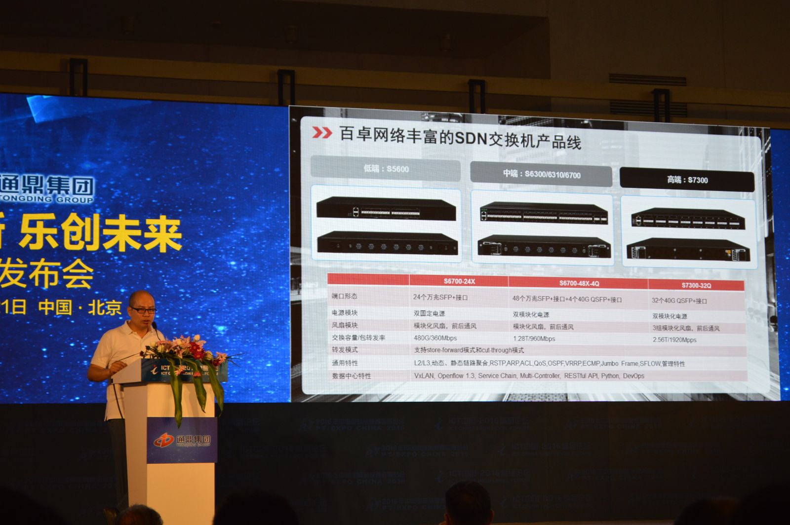 通鼎互聯(lián)旗下子公司百卓網(wǎng)絡總經理陳海濱發(fā)布了SDN解決方案。SDN通過動態(tài)調度、用戶分級,保持流量均衡轉發(fā)鏈路利用率高,節(jié)省帶寬建設。