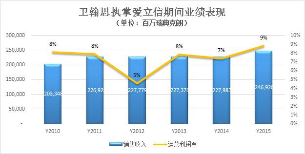 衛(wèi)翰思于2010年1月1日正式就任愛立信CEO,到2016年為止共發(fā)布過6次年報(bào),從這6份年報(bào)披露的公司財(cái)務(wù)數(shù)據(jù)來看,在衛(wèi)翰思執(zhí)掌愛立信的6年多時(shí)間里,其創(chuàng)造的業(yè)績實(shí)在是差強(qiáng)人意:銷售收入在6年間僅增長了20%,且始終在2000億到2500億瑞典克朗(約300億美元)間徘徊,而運(yùn)營利潤率則一直低于10%?! ?/p>