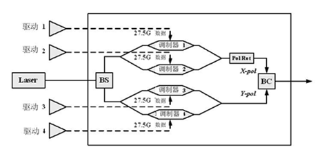 2.1 100Gb/s線路側(cè)的集成DP-QPSK光發(fā)射機(jī)器件