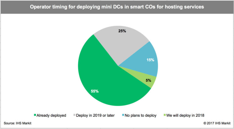 IHS認為,70%的運營商計劃在智能端局中部署CORD(central office re-architected as a data center,端局重構(gòu)為數(shù)據(jù)中心)。此外,該公司表示到2023年,預(yù)計運營商44%的端局將成為智能端局,50%的運營商將部署CORD。