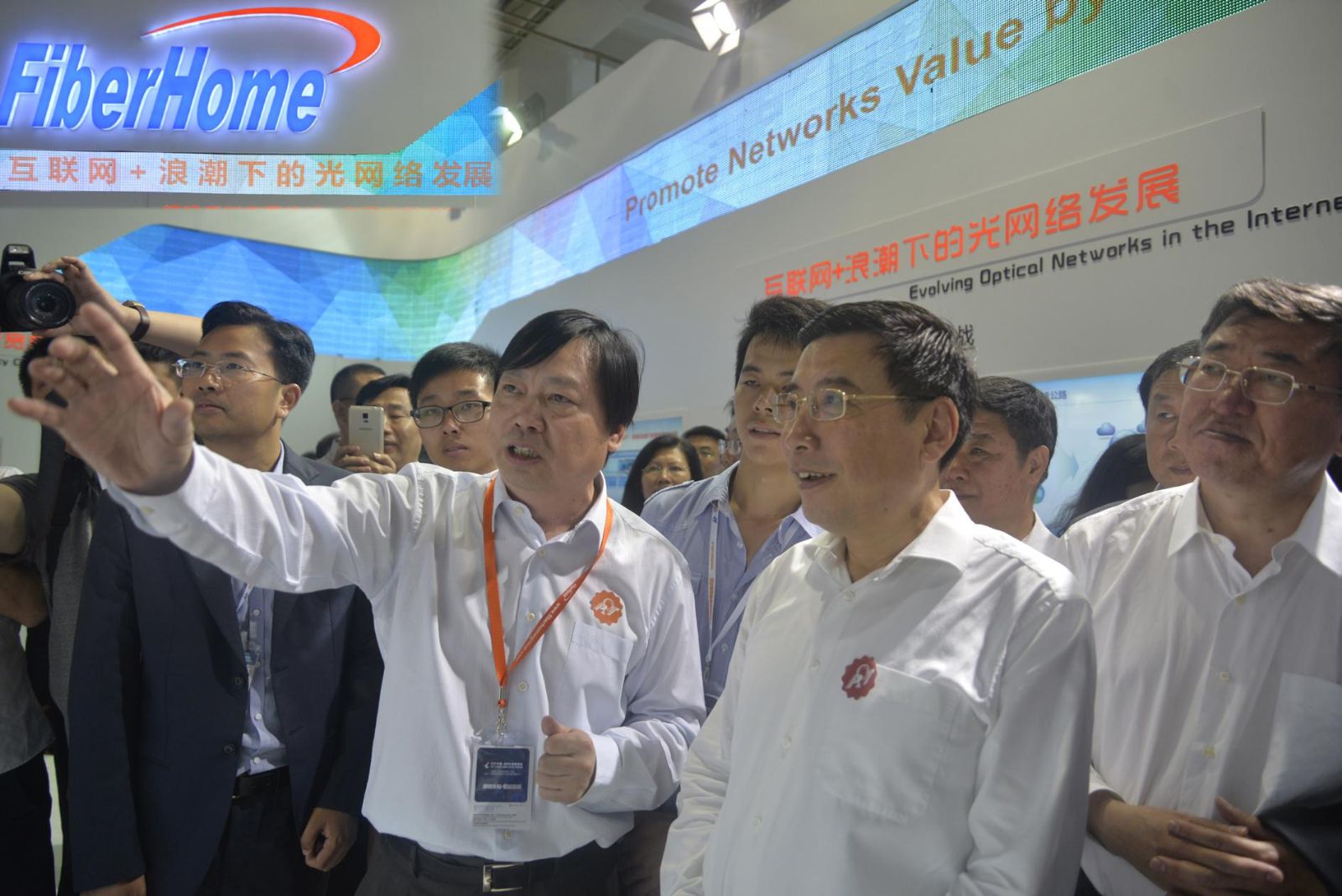 9月22日,2015年中國(guó)國(guó)際通信展覽會(huì)暨ICT中國(guó)高層論壇開幕,工信部部長(zhǎng)苗圩、三大運(yùn)營(yíng)商高層、中國(guó)貿(mào)易促進(jìn)會(huì)和中國(guó)通信企業(yè)協(xié)會(huì)領(lǐng)導(dǎo)出席開幕式,烽火科技集團(tuán)董事長(zhǎng)童國(guó)華出席開幕式和高層論壇。9月22日上午,工業(yè)和信息化部部長(zhǎng)苗圩、總工程師張峰來到烽火科技展臺(tái)參觀視察,在童國(guó)華董事長(zhǎng)的陪同下了解了烽火科技科技創(chuàng)新動(dòng)態(tài)和今年的發(fā)展情況。