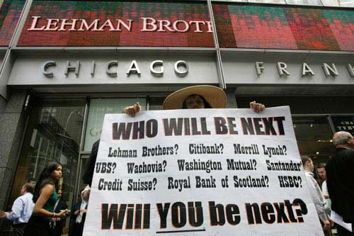擁有158年輝煌歷史的世界第三大投資銀行——雷曼兄弟申請破產(chǎn)保護(hù) 雷曼兄弟員工紛紛卷“鋪蓋”回家