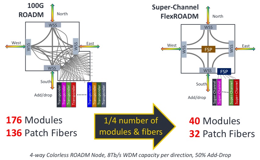 該靈活ROADM聲稱(chēng)將提供業(yè)內(nèi)兩個(gè)首創(chuàng):它可以隨意添加或刪除基于靈活網(wǎng)絡(luò)的500G超級(jí)通道,并使用互聯(lián)網(wǎng)工程任務(wù)組(IETF)的頻譜交換光網(wǎng)絡(luò)(SSON)。SSON是下一代WSON[波長(zhǎng)交換光網(wǎng)絡(luò)控制平臺(tái)],除了它的頻譜管理。