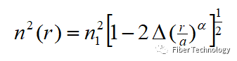 折射率拋物線分布公式如下,相對(duì)折射率差為1%,阿爾法定義了折射率分布的曲率,理想情況下,阿爾法為2,但是由于材料色散的影響,阿爾法應(yīng)該增大,以抵消材料色散的影響。