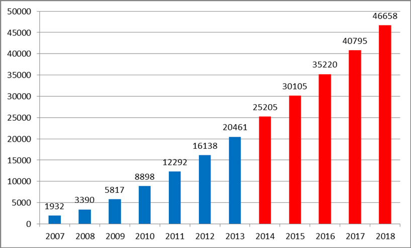 歐洲FTTH/B用戶發(fā)展預(yù)測(In thousand)