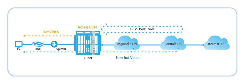 當(dāng)前CDN(Content Delivery Network,內(nèi)容分發(fā)網(wǎng)絡(luò))已取得廣泛應(yīng)用。對于節(jié)假日或重要賽事等集中時段和熱門視頻,用戶需求會在短時間內(nèi)激增,形成大量重復(fù)流量,造成網(wǎng)絡(luò)負(fù)荷過大,影響用戶體驗。將CDN下沉到網(wǎng)絡(luò)邊緣成為一種趨勢,其中Access CDN就是CDN節(jié)點下沉到接入機房的一種CDN網(wǎng)絡(luò)形式,可進一步減少OLT上層網(wǎng)絡(luò)壓力。
