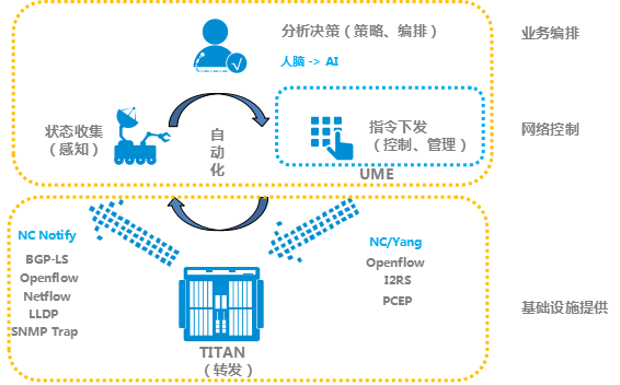 新一代OLT(光線路終端),如中興通訊的TITAN,導(dǎo)入SDN技術(shù),實(shí)現(xiàn)了控制和轉(zhuǎn)發(fā)面分離的架構(gòu),通過分層解耦,將能力分布到業(yè)務(wù)編排、網(wǎng)絡(luò)控制、基礎(chǔ)設(shè)施提供3個(gè)層面,各層面之間按能力集交付,各自獨(dú)立開發(fā)、驗(yàn)證、發(fā)布。