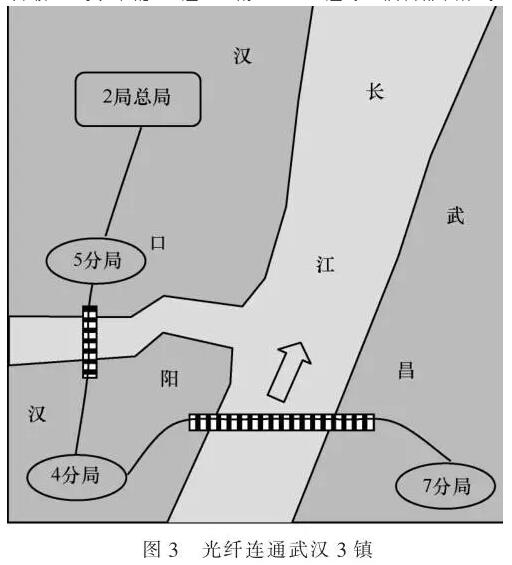 國(guó)家科技領(lǐng)導(dǎo)已經(jīng)認(rèn)識(shí)到“光纖通信”是通向“信息時(shí)代”的橋梁,立項(xiàng)“八二工程”,即要在武漢建設(shè)中國(guó)第一條實(shí)用化的光纖通信線路。用光纖連通武漢3鎮(zhèn),如圖3所示?! ?/p>