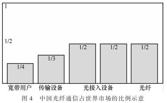 武漢院曾經(jīng)把光纖制造技術(shù)轉(zhuǎn)讓給江蘇的亨通線纜廠和其他廠商,帶動(dòng)了中國(guó)的光纖光纜產(chǎn)業(yè)。現(xiàn)在,中國(guó)的光纖通信產(chǎn)量和市場(chǎng)占有率是世界第一,如圖4所示?! ?/p>