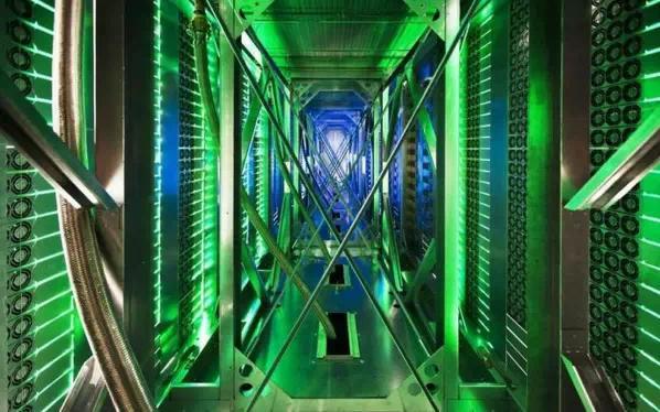 服務器背后,幾百個風扇為服務器散熱,制冷系統(tǒng)吸收熱量