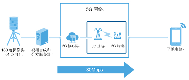 演示廳設置的180度攝像頭拍攝到的風景,通過5G網(wǎng)絡超高速發(fā)送。為了讓多個終端用戶可以從不同角度同時欣賞風景,180度攝像頭利用4個鏡頭從不同方向拍攝視頻,這些視頻被實時合成為廣角全景圖像。對全景視頻數(shù)據(jù)進行壓縮、利用5G網(wǎng)絡實時發(fā)送給智能手機或平板電腦,從而提供身臨其境的用戶體驗。此項技術(shù)與5G網(wǎng)絡融合,有望應用于虛擬現(xiàn)實(VR)和增強現(xiàn)實(AR)等方面。