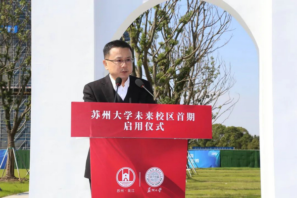 本次揭牌儀式前,蘇州大學未來校區(qū)舉行了首期啟用儀式,儀式由吳江區(qū)人民政府副區(qū)長陳建忠主持,吳江區(qū)委書記李銘、蘇州大學黨委書記江涌先后發(fā)表致辭。蘇州大學黨委常委、副校長沈明榮詳細介紹了未來校區(qū)專業(yè)設置、招生計劃、人才需求等發(fā)展規(guī)劃。