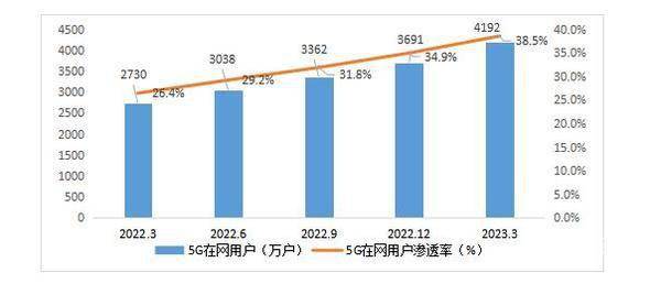 5G用戶滲透率接近4成。至2023年3月底,我省移動電話用戶總數(shù)達(dá)1.09億戶,全國排名第3位;其中,5G在網(wǎng)用戶達(dá)4192.8萬戶,全國排名第2位,占移動電話用戶的38.5%;5G手機(jī)終端連接數(shù)達(dá)5554.5萬戶,占移動電話用戶的51.6%。