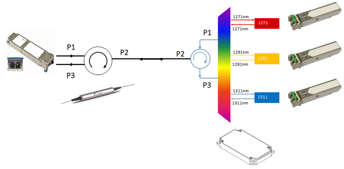 ·1271nm, 1291nm, 1311nm,1331nm 4個波長實現(xiàn)雙向通訊