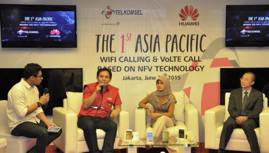 ICCSZ訊 6月27日,印度尼西亞最大移動運營商TELKOMSEL近日攜手華為在其總部Wilma Mulia向外界展示基于NFV(Network Function Virtualization)的WiFi Calling和VoLTE(Voice over LTE) 4G 融合通信業(yè)務。
