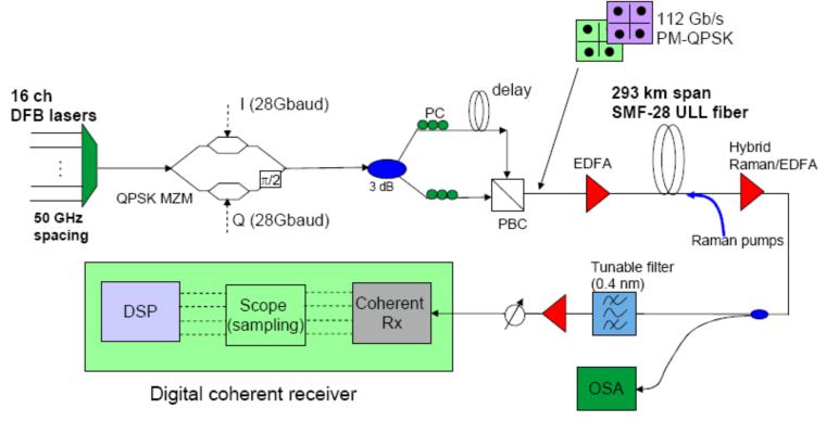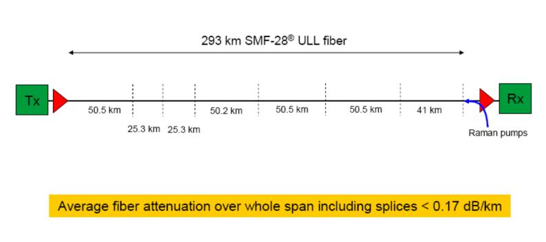 Fig.3 293 km non-relay transmission system by using ULL fiber at 100 Gbit/s