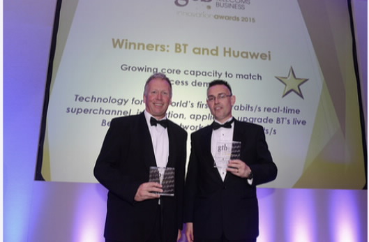 ICCSZ訊 6月9日,華為宣布在國(guó)際電信行業(yè)權(quán)威媒體《全球通信商業(yè)》(GTB,Global Telecoms Business)舉辦的年度電信行業(yè)創(chuàng)新頒獎(jiǎng)典禮上,英國(guó)電信(British Telecom)攜手華為榮獲“GTB 2015創(chuàng)新獎(jiǎng):固網(wǎng)基礎(chǔ)設(shè)施創(chuàng)新獎(jiǎng)”(GTB Innovation Award 2015:Fixed network infrastructure innovation),以表彰華為與英國(guó)電信合作完成的業(yè)界最高速率3Tbps超高速光傳輸現(xiàn)網(wǎng)測(cè)試,以及在都柏林與貝爾法斯特之間的波分現(xiàn)網(wǎng)上實(shí)施的400Gbps OTN部署。