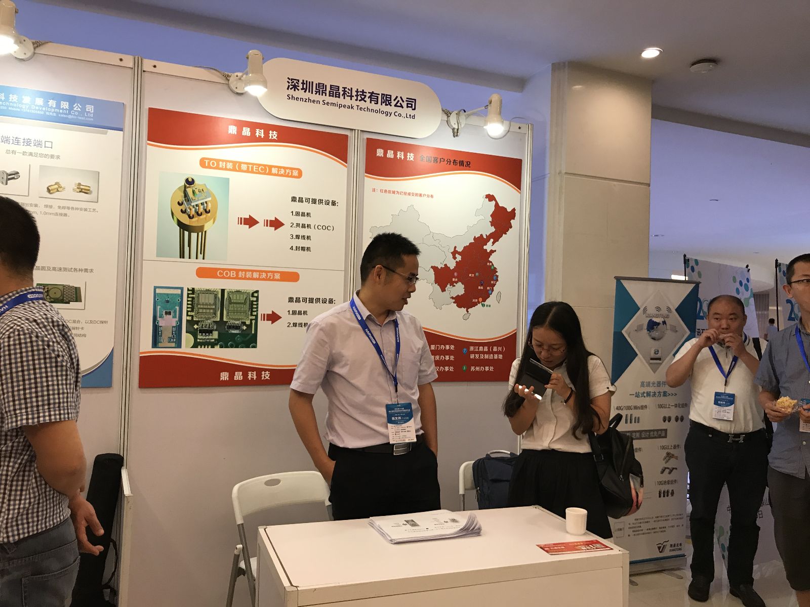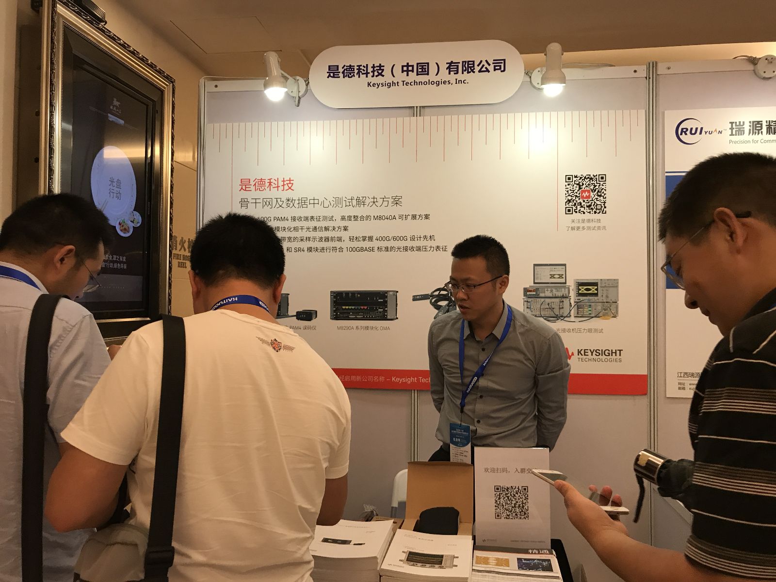 此次會(huì)議與往年較大不同之處在于,會(huì)議上開設(shè)了展臺,為參展企業(yè)提供了一個(gè)市場拓展、品牌推廣的平臺。同時(shí),也能讓參會(huì)嘉賓了解發(fā)掘到優(yōu)秀的產(chǎn)品。此次會(huì)議參展的企業(yè)有:杭州維勘科技有限公司、深圳鼎晶科技有限公司、上海帆測科技發(fā)展有限公司、東莞市藍(lán)光科技有限公司、深圳市超儀科技有限公司、深圳市維度科技有限公司、菲尼薩光電通訊(上海)有限公司、河南鑫宇光科技股份有限公司、東莞市揚(yáng)光五金制品有限公司、武漢博聯(lián)特科技有限公司、深圳市億天龍科技發(fā)展有限公司、是德科技(中國)有限公司、江西瑞源精密制造有限公司,下面我們一起跟隨鏡頭感受一下這13家企業(yè)帶來的眾多優(yōu)質(zhì)產(chǎn)品!