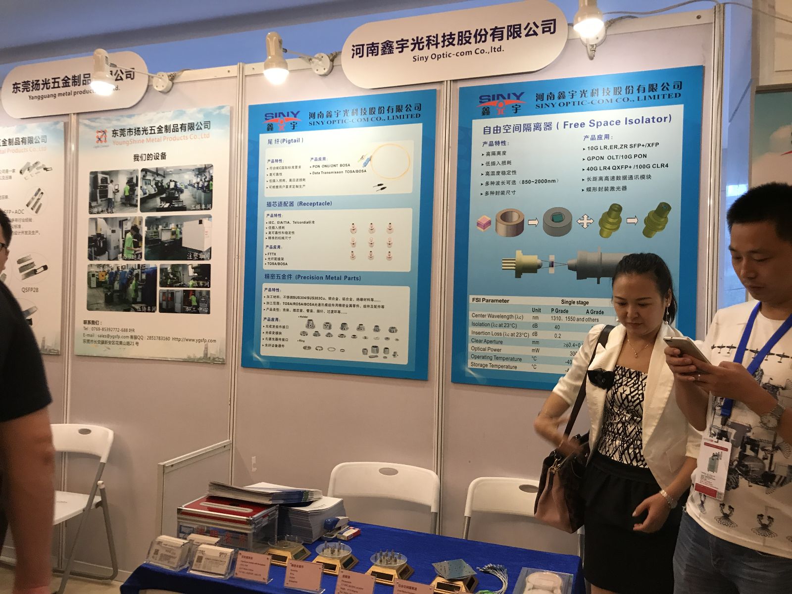 此次參展訊石研討會(huì),鑫宇光就帶來了其代表產(chǎn)品尾纖、插芯適配器、精密五金件、自由空間隔離器等。