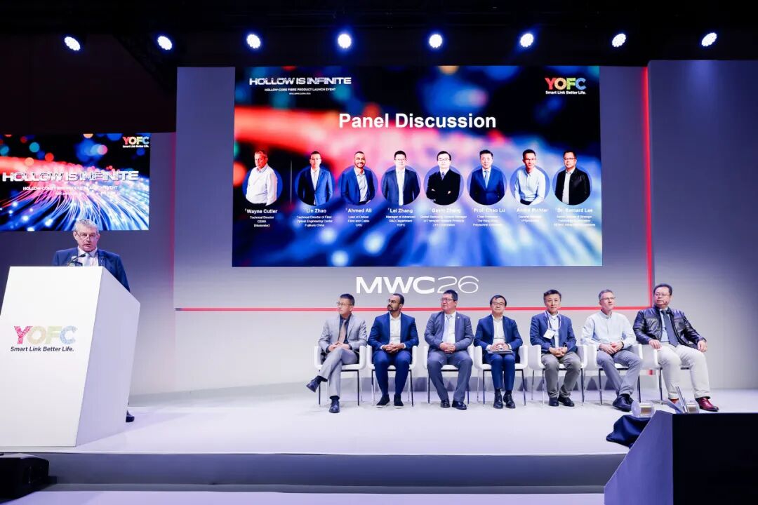 ICC訊 當?shù)貢r間3月4日,在MWC Barcelona 2026期間,長飛公司隆重舉辦空芯光纖發(fā)布會,正式發(fā)布空芯光纖品牌HollowBand®,并宣布一系列引領全球的空芯光纖技術與商業(yè)化成果。