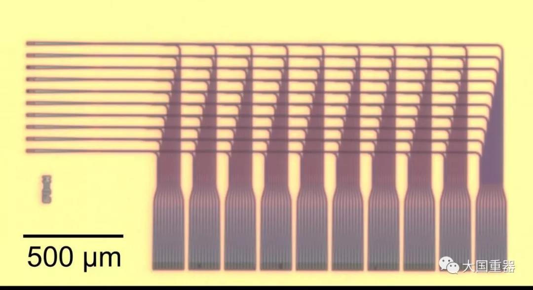 堆疊的波導結構形成一個三維網格,該網格具有10個輸入神經元,每個神經元連接到10個輸出神經元,共計100個接收器。這些波導結構是在硅晶圓上制造的,由氮化硅制成,每個波導結構長度為800納米(nm),厚度為400nm。研究人員開發(fā)了一種可自動生成信號布線的軟件,并在神經元之間能進行可調節(jié)的連接。