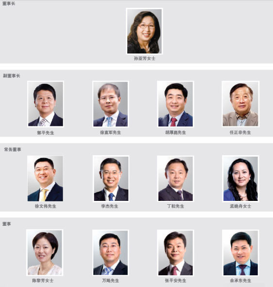 去年,華為曾傳出“換班門”風(fēng)波,華為的最高核心管理層也備受外界關(guān)注。對此任正非也曾表態(tài)表示“華為不會(huì)走家族化企業(yè)道路”。昨日,華為正式公布了公司新一屆董事會(huì)和監(jiān)事會(huì)成員。據(jù)介紹,2010年底,全體持股員工投票選舉產(chǎn)生51名持股員工代表和9位候補(bǔ)持股員工代表,并由持股員工代表選舉產(chǎn)生公司新一屆董事會(huì)和監(jiān)事會(huì)成員。新一屆董事會(huì)成員為孫亞芳、郭平、徐直軍、胡厚崑、任正非、徐文偉、李杰、丁耘、孟晚舟、陳黎芳、萬飚、張平安、余承東;監(jiān)事會(huì)成員為梁華、彭智平、任樹錄、田峰、鄧飚。其中曾被傳“被逼離職”的孫亞芳繼續(xù)留任董事長,郭平、徐直軍、胡厚崑、任正非為副董事長。