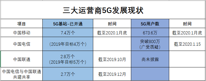 除了中國移動,從中國電信公開的信息看,2019年中國電信目標(biāo)開通5G基站4萬個,中國聯(lián)通2019年已開通2.8萬個,此外,自2019年9月中國電信與中國聯(lián)通達(dá)成共建共享以來,雙方共建共享的5G基站2.7萬個。