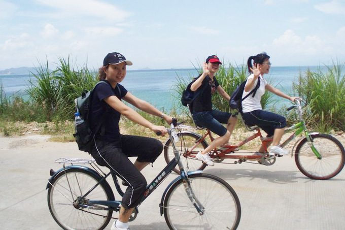 【活動暢想】:當雙人自行車在美麗的沿海公路緩緩前行,海風飄動你的黑發(fā),發(fā)稍后是你初識的好友或是你的至愛或是你的孩子,而眼前是藍藍的大海,心是如此的輕,所有生活中的繁瑣都不見,唯有寫在你臉上的幸福與滿足——快樂有時真得很簡單!