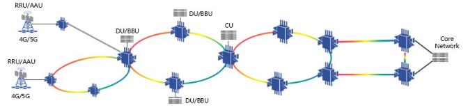 OTN具有大帶寬、低時延、多業(yè)務(wù)透明傳送、高精度同步、安全可靠、易維護等特點,很好的匹配了5G的需求,是未來5G承載的主流技術(shù)。在對時延極其敏感的5G前傳網(wǎng)絡(luò)中,采用OTN承載,可實現(xiàn)CPRI、eCPRI、NGFI、Ethernet等多路業(yè)務(wù)信號的點到點波長直達傳輸,中間節(jié)點光層穿通,所有業(yè)務(wù)的時延都是最低。采用OTN技術(shù)實現(xiàn)5G前傳,相對于光纖直驅(qū)、無源波分、分組轉(zhuǎn)發(fā)等其他方式來說,在帶寬、多業(yè)務(wù)接入、故障定位、網(wǎng)絡(luò)保護等方面也有優(yōu)勢。5G回傳網(wǎng)絡(luò)將會是固移業(yè)務(wù)統(tǒng)一承載的數(shù)據(jù)中心互聯(lián)網(wǎng)絡(luò),各級DC通過光網(wǎng)絡(luò)高速互聯(lián),存在多種解決方案,基于分組增強OTN節(jié)點設(shè)備的光電混合調(diào)度,承載網(wǎng)進行扁平化改造,實現(xiàn)多路徑通達,減少網(wǎng)絡(luò)層次及設(shè)備跳數(shù),可以進一步降低時延。OTN傳送平面能同時在硬管道和軟管道上進行各種顆粒業(yè)務(wù)的隔離和調(diào)度,助力5G網(wǎng)絡(luò)實現(xiàn)端到端切片。