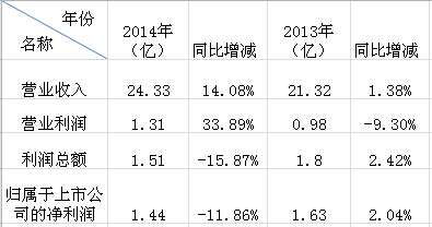 但這一季的波動(dòng)并未影響大局,從光迅科技日前公布的2014年的業(yè)績(jī)快報(bào)看來(lái),光迅科技2014年的營(yíng)業(yè)總收入為24.33億元,2013年度營(yíng)收21.32億元,營(yíng)業(yè)收入同比增長(zhǎng)14.08%;歸屬于上市公司股東的凈利潤(rùn)為1.44億元,同比下降11.86%;營(yíng)業(yè)利潤(rùn)1.31億元,同比增長(zhǎng)33.89%;利潤(rùn)總額為1.51億元,同比下降15.78%。